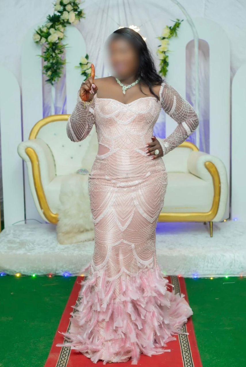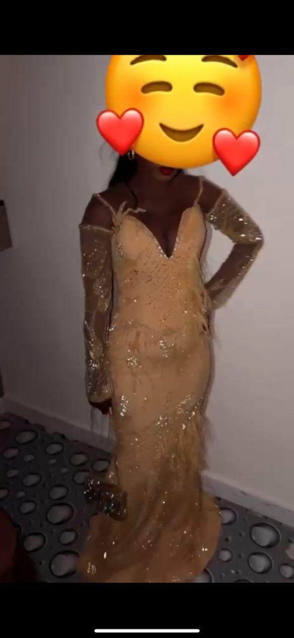 Seconde mainRobe en dentelle beige avec manches transparentes