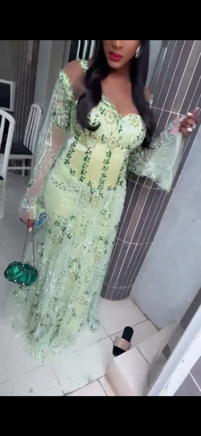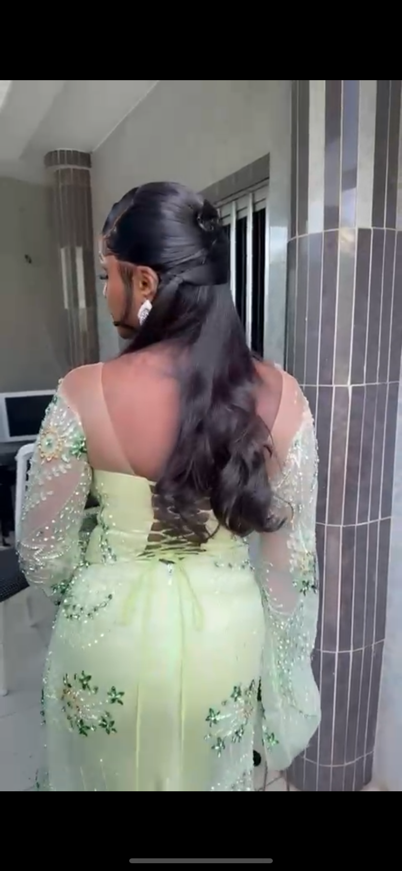 Cette robe verte olive ornée de perles et de broderies délicates offre une allure élégante et raffinée. Parfaite pour les occasions spéciales. Cette bel tissu rend vos journées plus agréable ❤️❤️