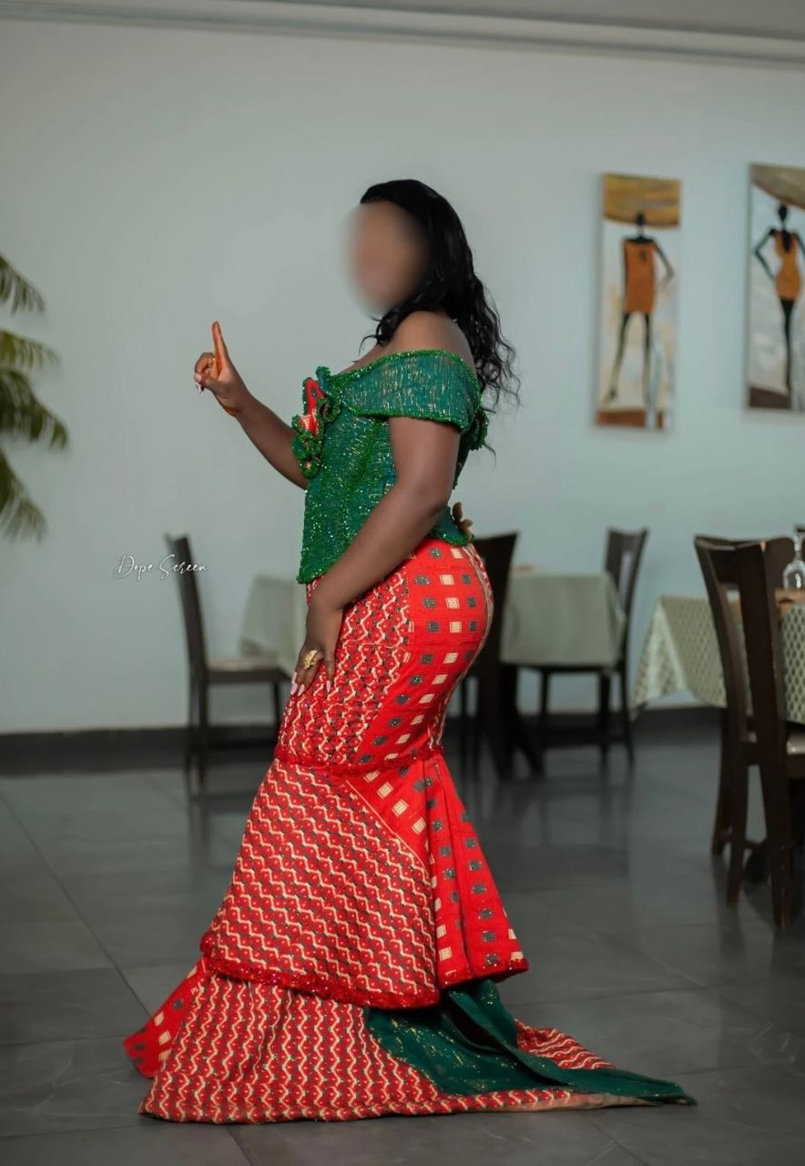 Cette robe élégante en pagne tissé présente un design en coupe sirène, mettant en valeur la silhouette. Les couleurs vives et les détails raffinés ajoutent une touche de sophistication. Prix tissu : 70 0000 Prix couture : 250 000
