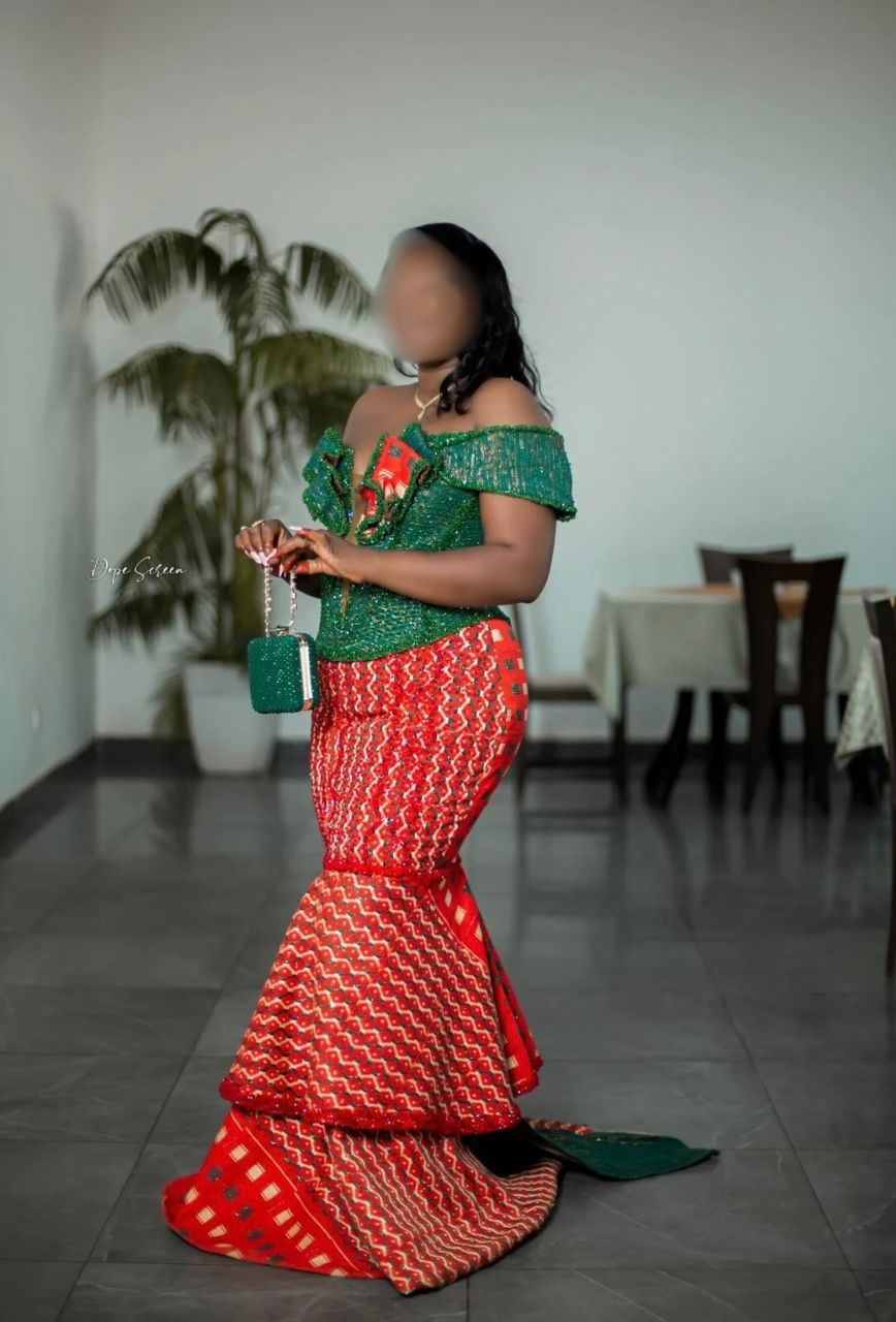 Seconde mainTaille basse en Wax Kenté rouge et vert, coupe sirène