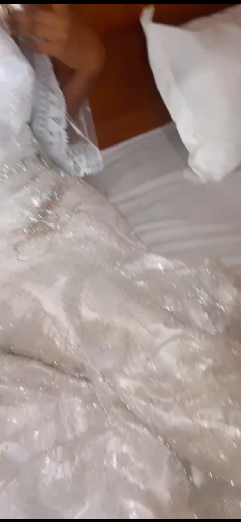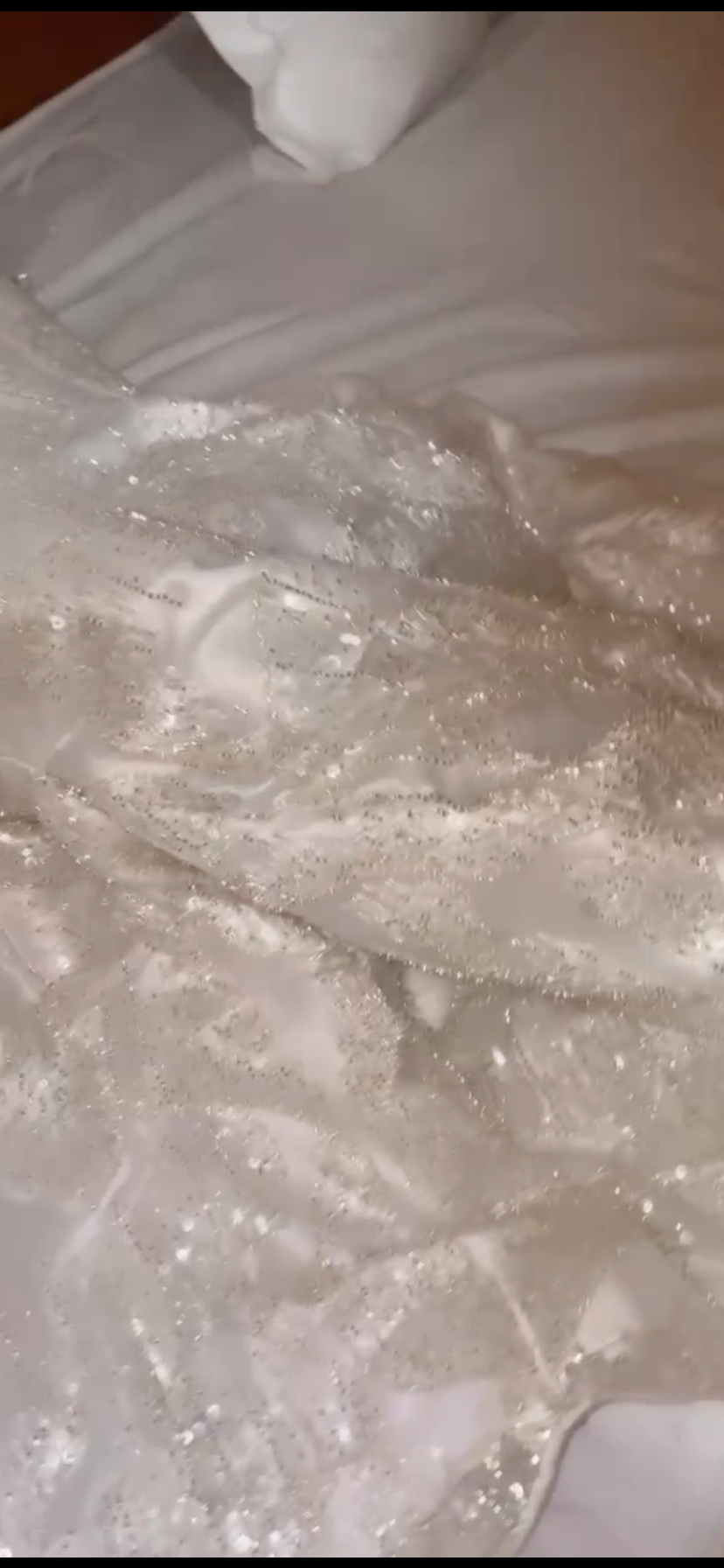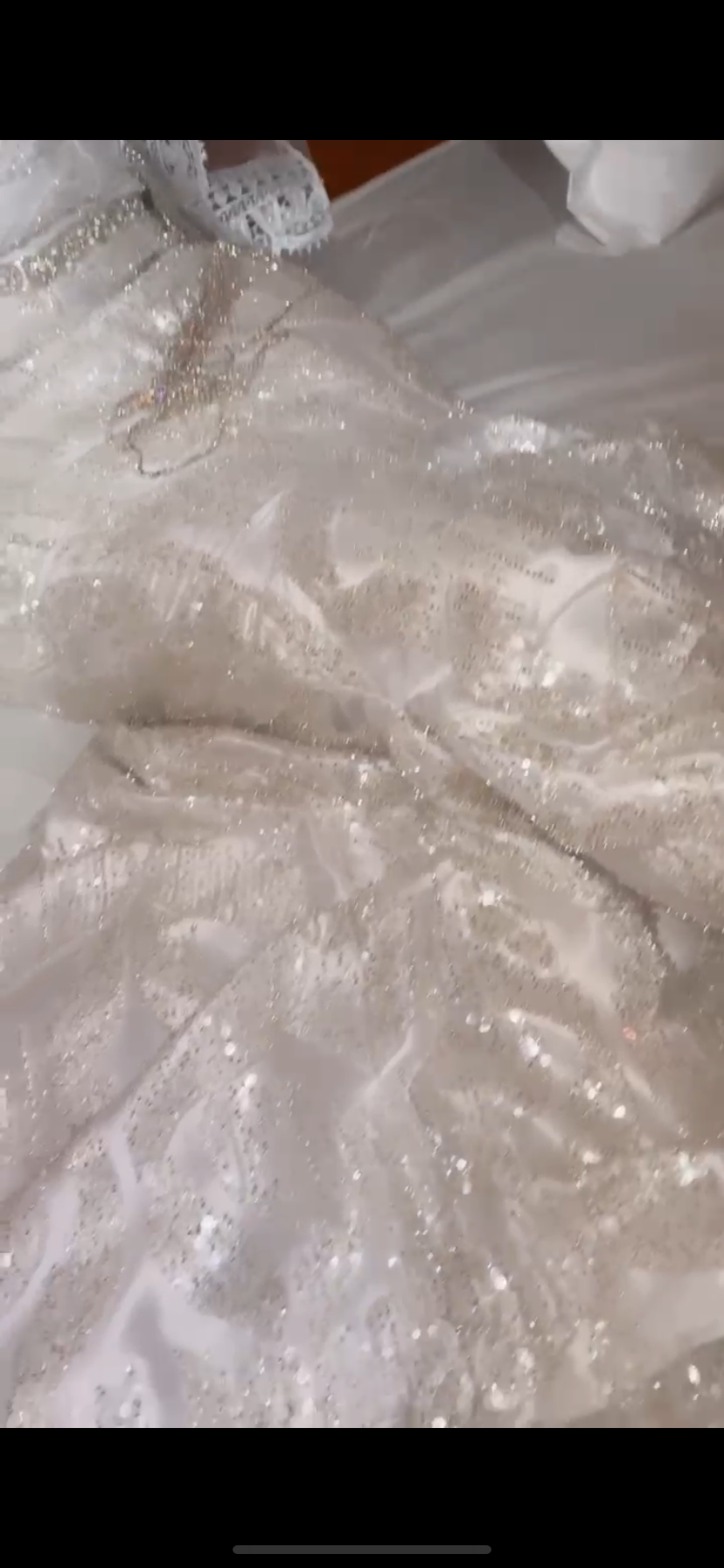 Cette robe blanche élégante est ornée de perles scintillantes et de détails en dentelle. Parfaite pour les occasions spéciales. Avec une coupe exceptionnelle