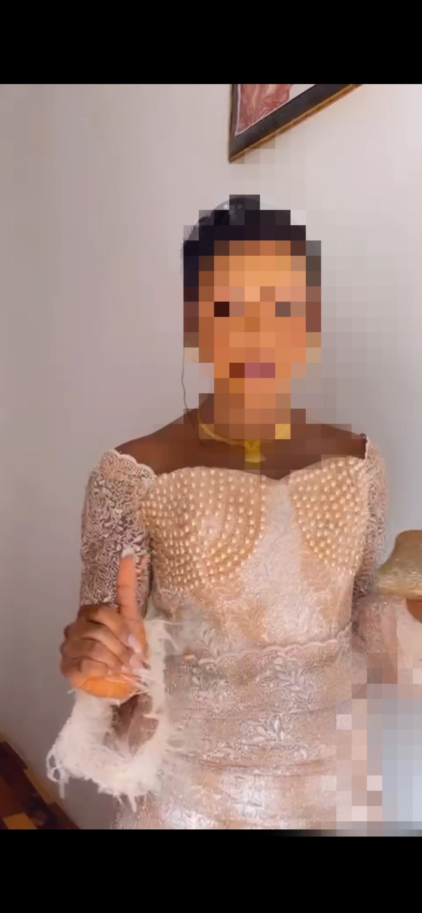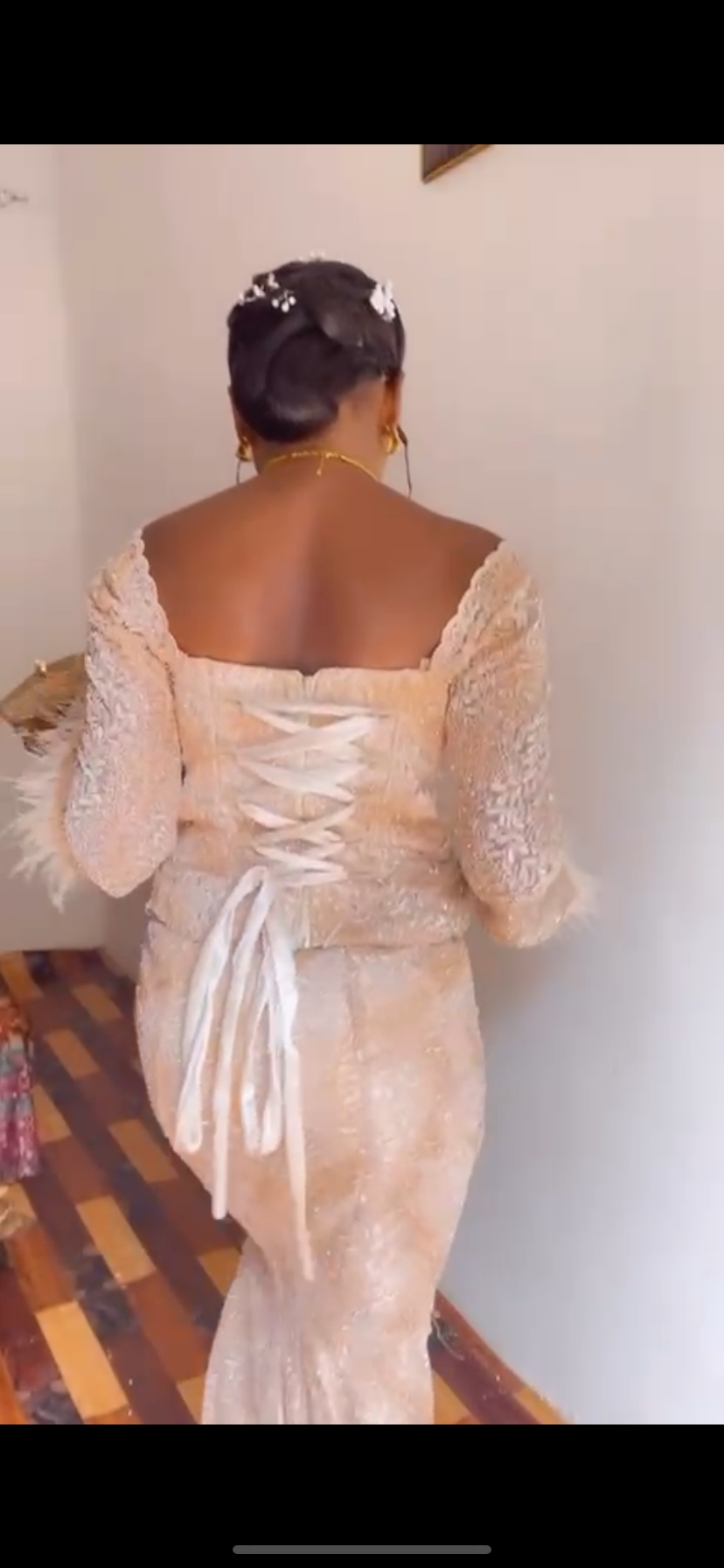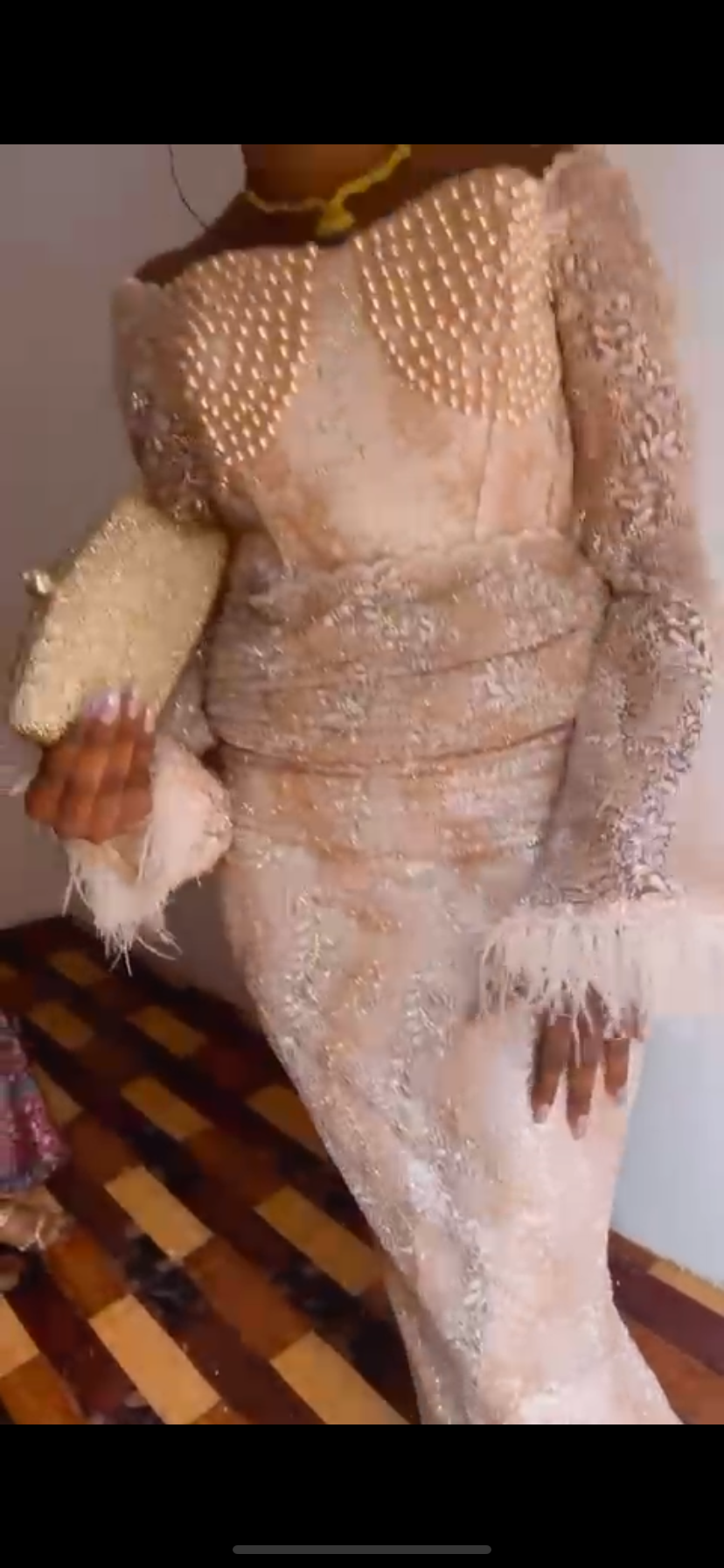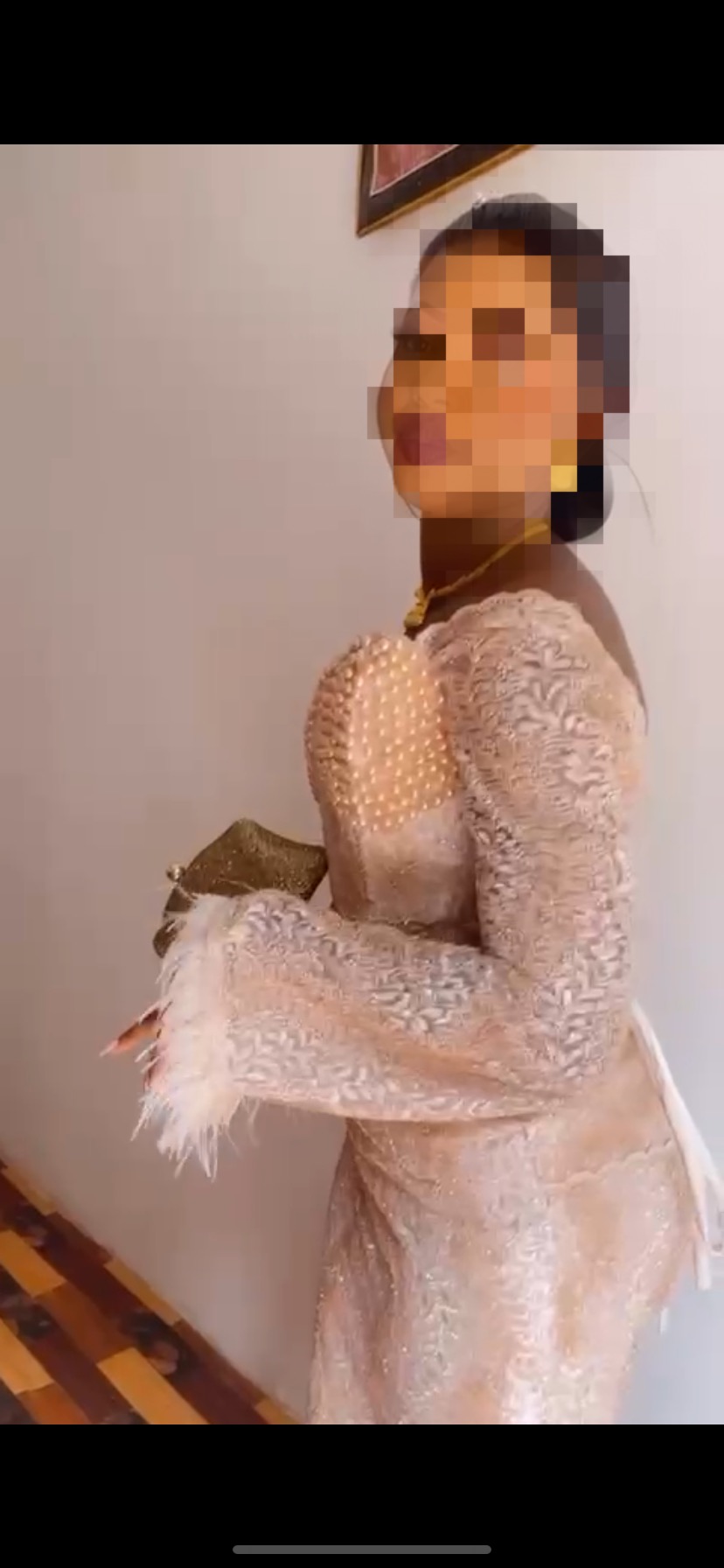 Cette taille basse présente un design raffiné avec des détails perlés sur le buste et des manches en dentelle. Parfaite pour les occasions spéciales. Avec une coupe ressemble à une robe