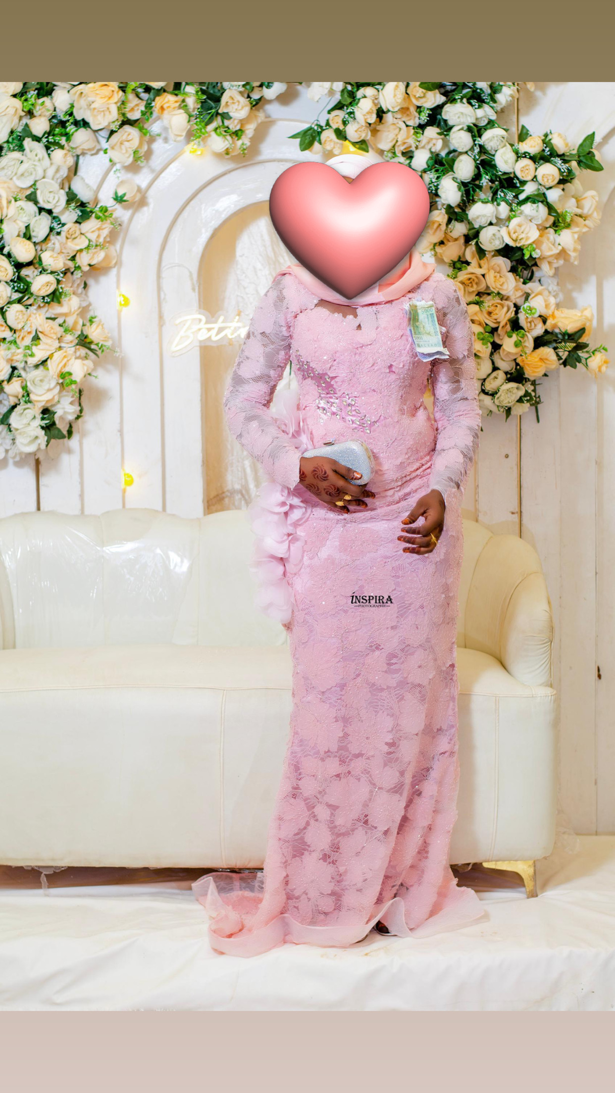 Robe de luxe pour femme en dentelle en soie . Très belle robe portée pour mon mariage aux tons raffinés et attirants . Robe en corset intérieur . Avec une traîne bien large et bien travaillée.