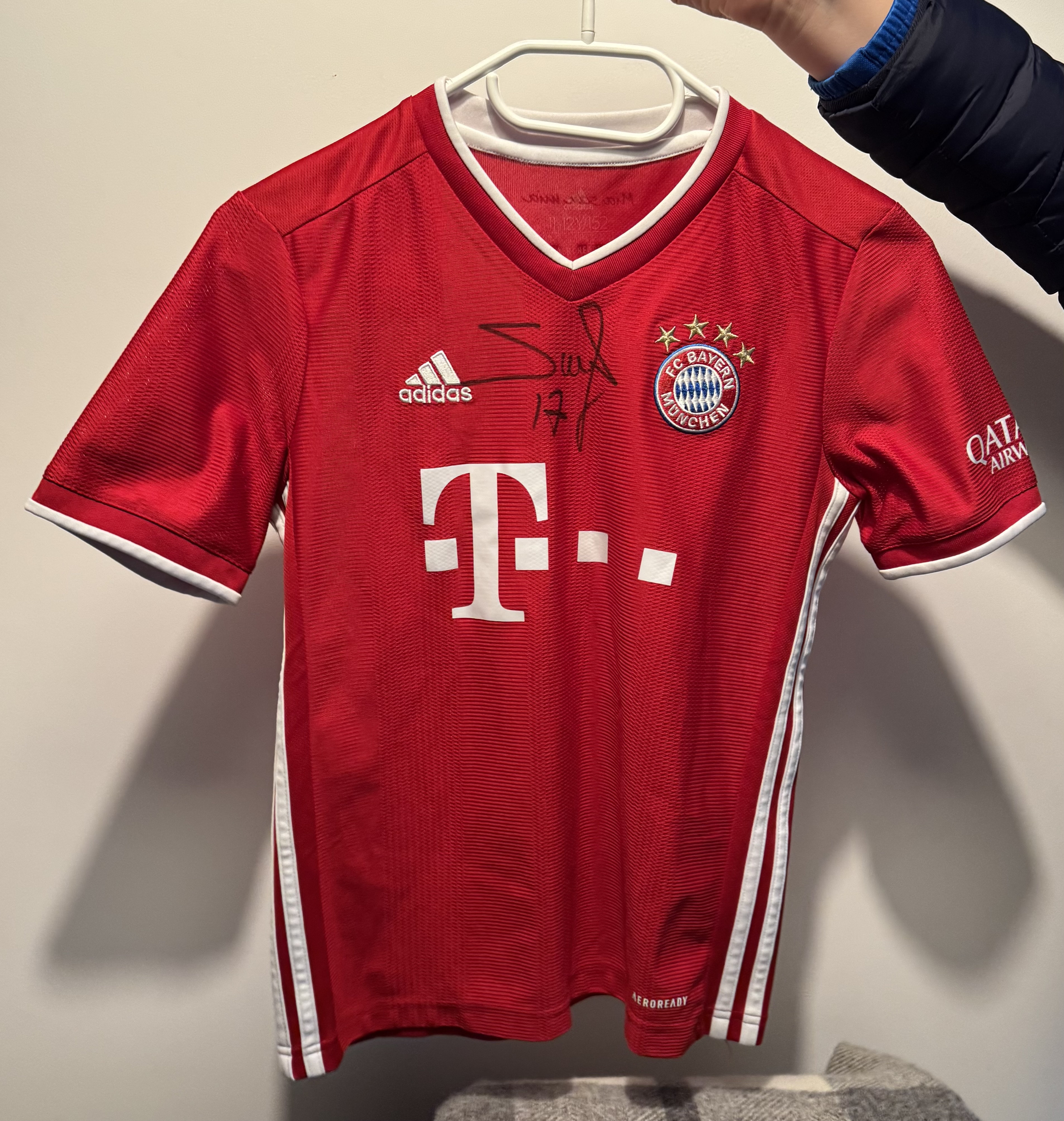 ends maillot signé de Sadio Mané Bayern Munich taille 12 ans, joueur rencontré à Genève. Totalement neuf, jamais porté.